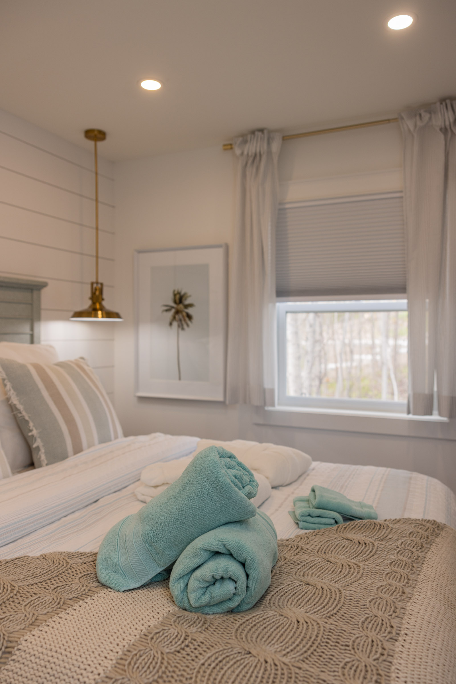 Make a connection with the nearby lake in this nautical-themed cabin.